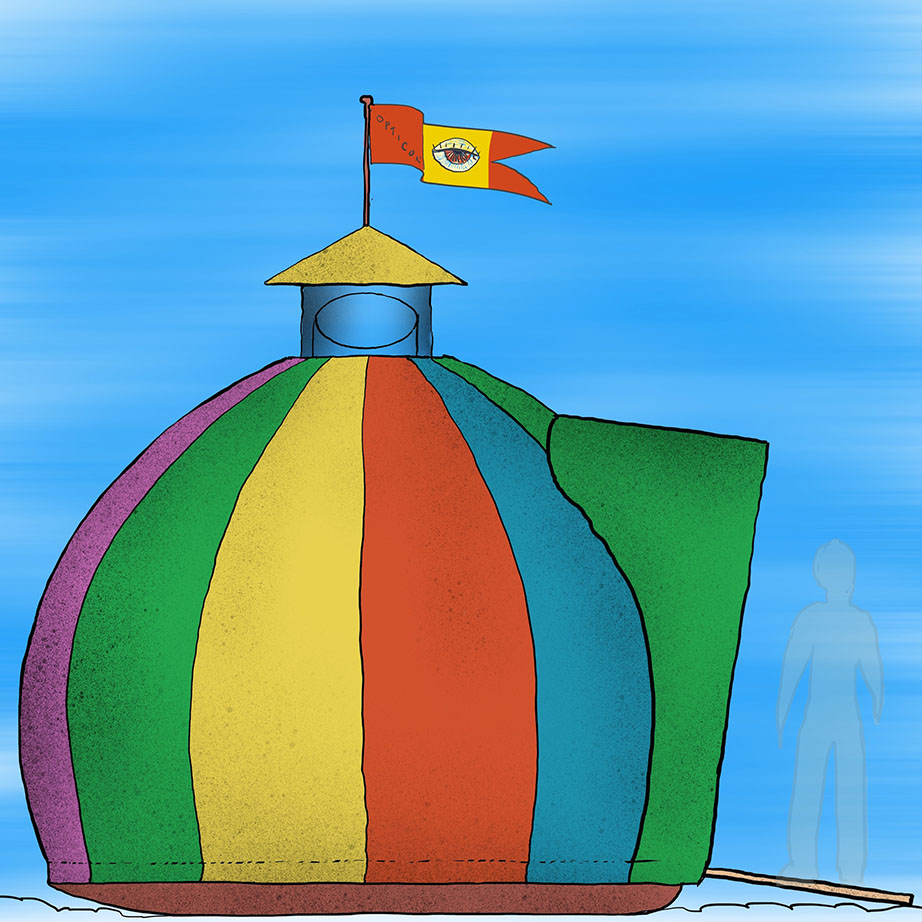 In the State of Minnesota, a non-portable ice house is legal if it is registered with the DNR and has at least two square-inches of reflective material on each side. This low threshold of legality creates an interesting loophole for artists and architects – without worry for typical building codes, you can build whatever you would like, and have it open to the public in the winter months, as long as you call it an ice house.