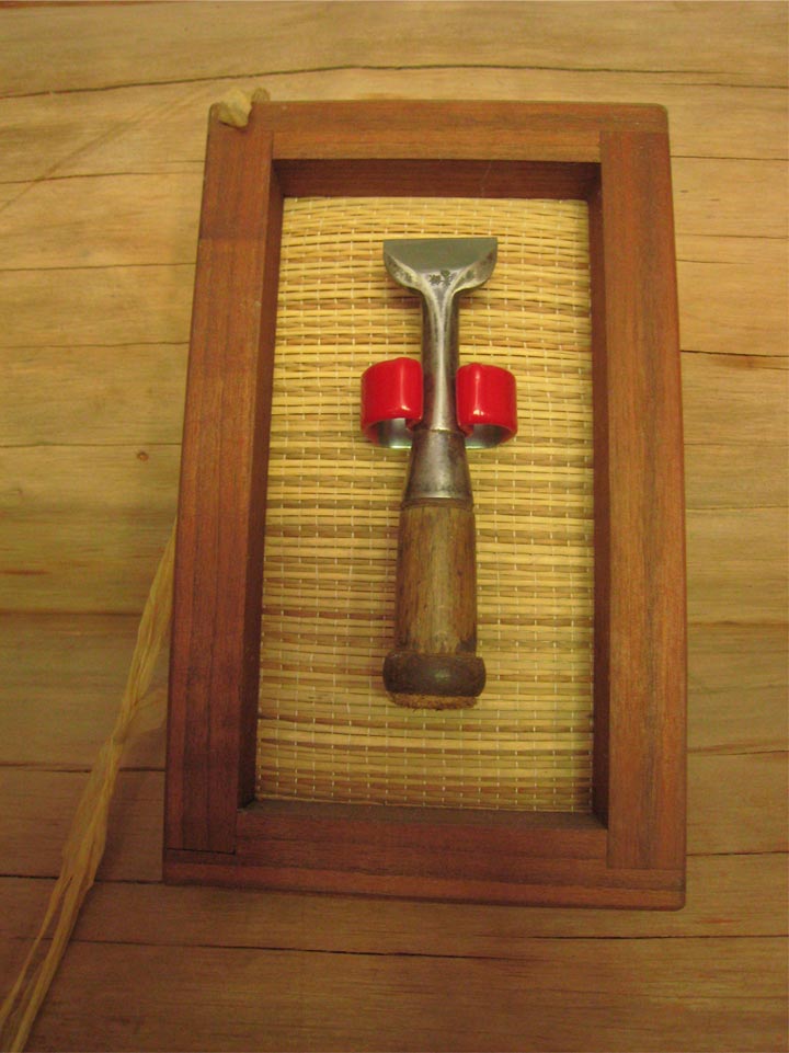 The workshop project was to layout, cut and assemble a Japanese Machiai, designed by Haruya Nishiyama. Master carptenter,Yasutoshi Senga (pictured right), was the workshop instructor. Deane spent the week working side by side with these master carpenters, substituting language with demonstration, hand signals and facial expression. The language barrier created a few awkward yet mutually entertaining moments. Deane spent a good deal of time trying to sharpen his planes and chisels to the rigorous Japanese standards, resulting in many little cuts to his fingertips. Each timber piece was laid out and cut with extreme precision using a “story pole” and ultra sharp chisels. Surfaces were planed to a fine sheen. When the many intricate pieces were ready, the Japanese carpenters and students signed their names with brush and ink on surfaces that were hidden from view. The Machiai was assembled with great celebration and donated to the auction.