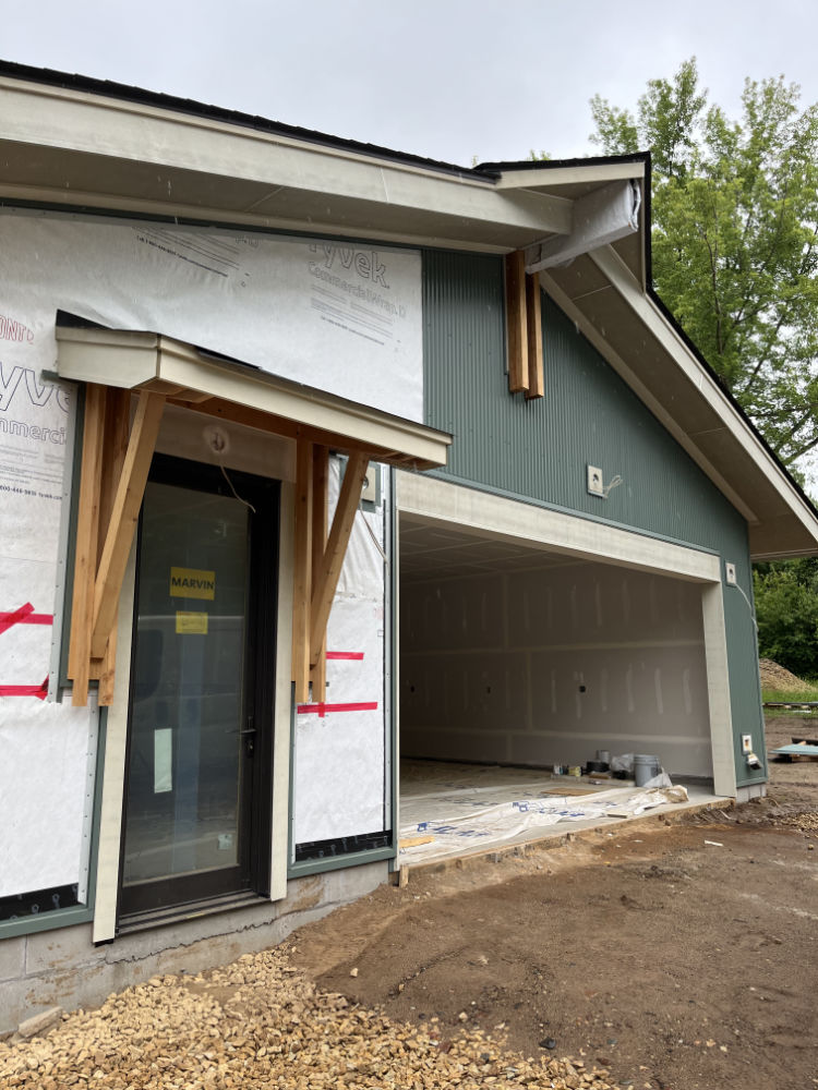 I get pretty excited about the guts of a building – this also means the finishes are up next. Design and craftsmanship really shine when the various textures, trims, and materials appear so simple, so effortless. For this home, an exterior palette of green corrugated metal and dark painted trim give the traditional gable forms a contemporary edge.