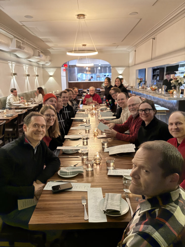 And once again we gather for a dinner to celebrate the good fortune that has brought this professional family together to do the work we love for a wealth of interesting clients. We’d also like to share a series of scenes from our daily rehearsals and wish you all Health and Happiness in the New Year!