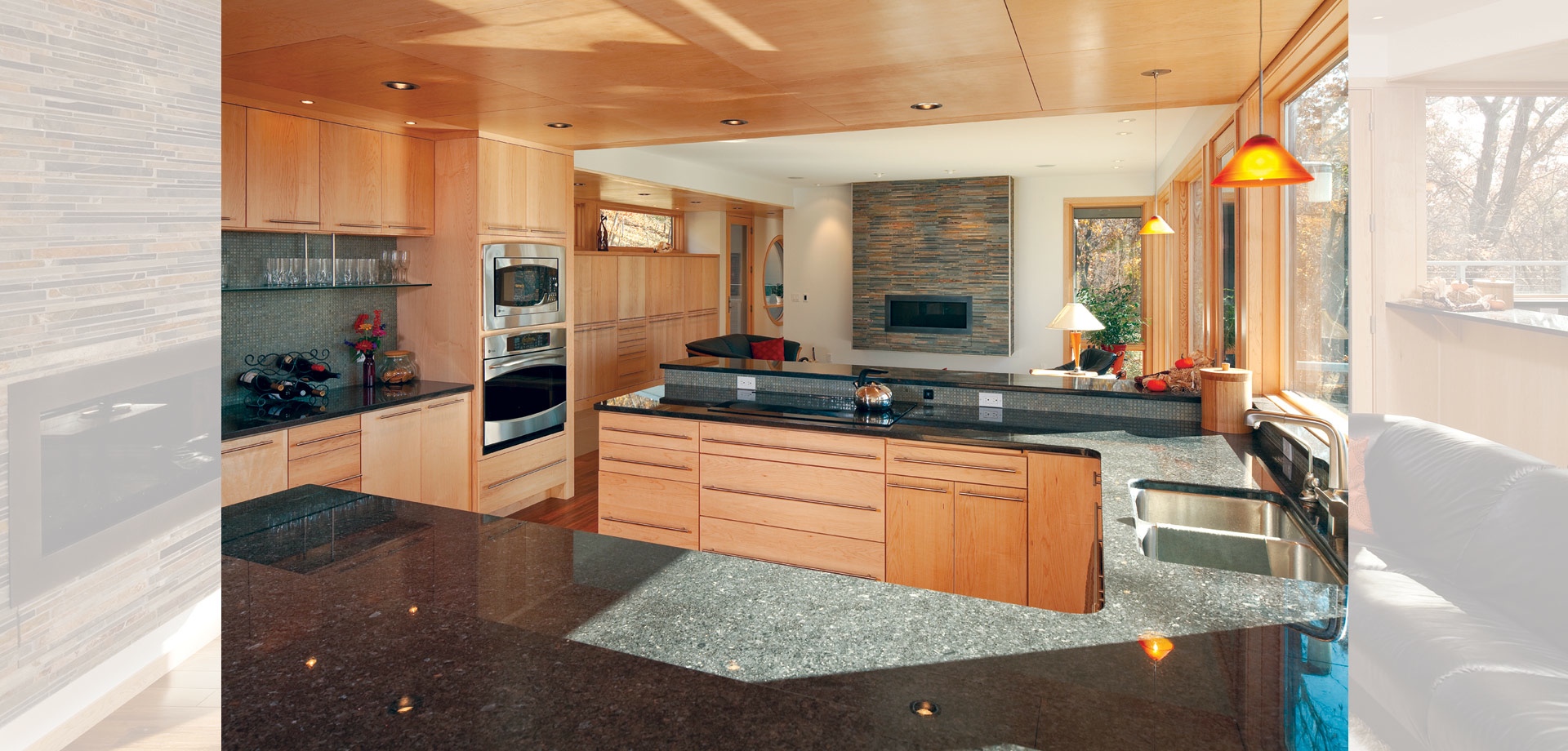 Unfolding like a strand of pearls from west to east across a steeply descending slope, this energy-efficient and sustainable home commands expansive winter views from its lofty ledge high above the north bank of the Zumbro River. Designed as a series of three linked pods, one each for garage, dwelling and retreat, this collection of sun-drenched forms strikes a quiet and respectful pose on this naturally wooded site.