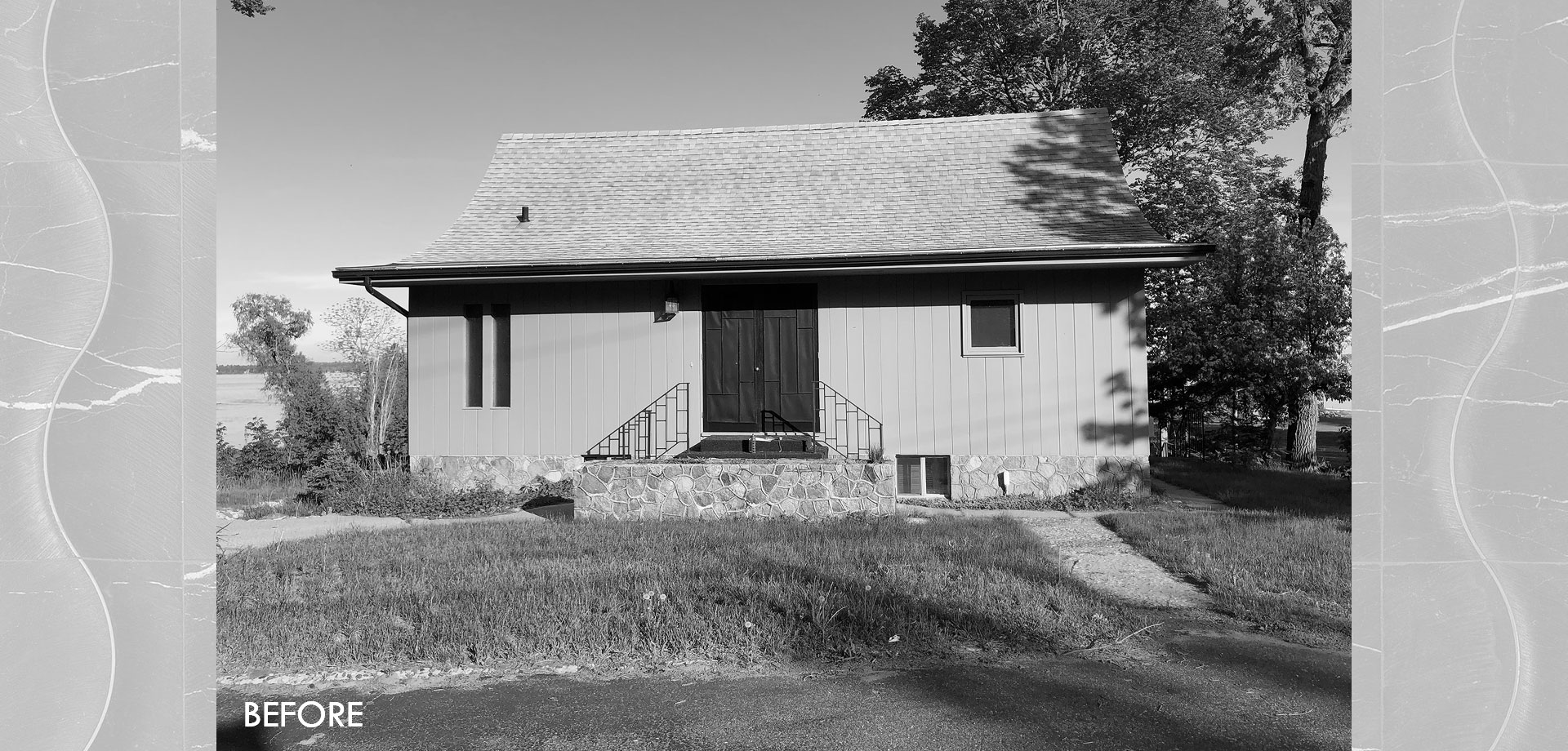 The owner was looking for a lake cabin in her northern Minnesota hometown when she discovered one she fondly recalled from her childhood, particularly memorable because of its uniquely bowed roof. The inside of this 1963 cabin was a time capsule complete with spiral stair, abundant paneling, and brass and mirrored details. What it lacked in updates, it exceeded in retro inspiration!